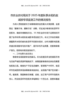 市农业农村局关于2025年度秋季水稻机收减损专项监测工作的情况报告.docx