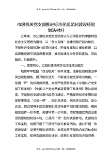 市级机关党支部推进标准化规范化建设经验做法材料.docx