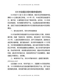 XX村全国文明村镇申报材料.docx