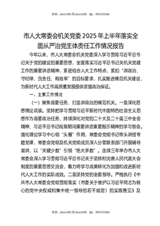 市人大常委会党委2025年上半年落实全面从严治党主体责任工作情况报告.docx