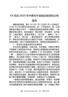 XX同志2025年中青年干部培训班党性分析报告.docx