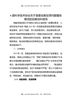 X县科学技术协会关于县委巡察反馈问题整改情况的自查自纠报告.docx