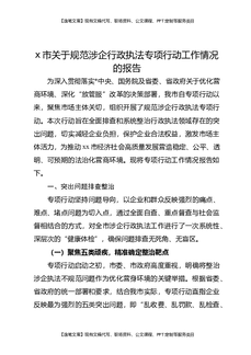X市关于规范涉企行政执法专项行动工作情况的报告.docx