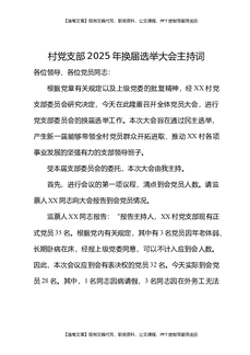村党支部2025年换届选举大会主持词.docx