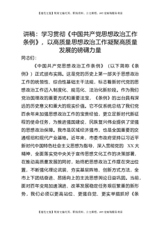 讲稿:学习贯彻《中国共产党思想政治工作条例》,以高质量思想政治工作凝聚高质量发展的磅礴力量.docx