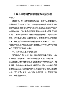 在2026年清明节前集体廉政提醒谈话提纲.docx