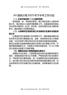 XX县统计局2025年下半年工作计划.docx