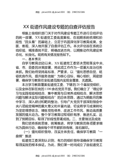 XX街道作风建设专题的自查评估报告.docx