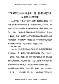 2026市政协中心组学习计划:围绕协商主业强化理论武装指南.docx