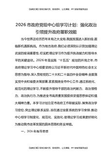 2026市政府党组中心组学习计划:强化政治引领提升政府履职效能.docx