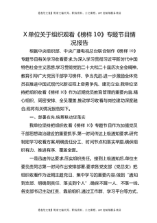 X单位关于组织观看《榜样10》专题节目情况报告.docx