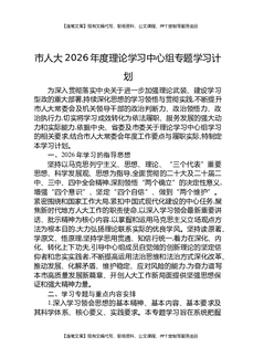 市人大2026年度理论学习中心组专题学习计划.docx