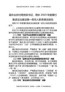 县农业农村局党组书记、局长,2025年度履行推进法治建设第一责任人职责情况报告.docx
