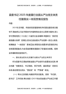 县委书记2025年度履行全面从严治党主体责任暨落实一岗双责情况报告.docx