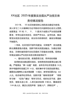 XX社区2025年度落实全面从严治党主体责任情况报告.docx
