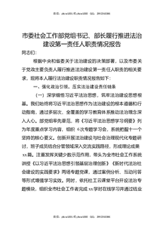 市委社会工作部党组书记、部长履行推进法治建设第一责任人职责情况报告.docx