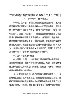 市就业局机关党支部书记2025年上半年履行“一岗双责”情况报告.docx