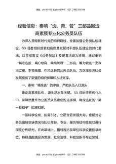 经验信息奏响选育管三部曲锻造高素质专业化公务员队伍.docx