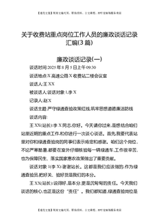 (3篇)关于收费站重点岗位工作人员的廉政谈话记录汇编.docx
