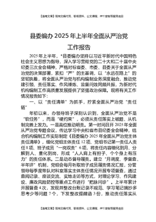 县委编办2025年上半年全面从严治党工作报告.docx