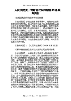 人民法院关于对赌协议纠纷案件12条裁判要旨.doc