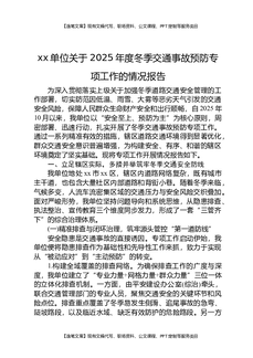 XX单位关于2025年度冬季交通事故预防专项工作的情况报告.docx