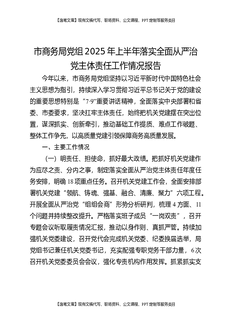 市商务局党组2025年上半年落实全面从严治党主体责任工作情况报告.docx