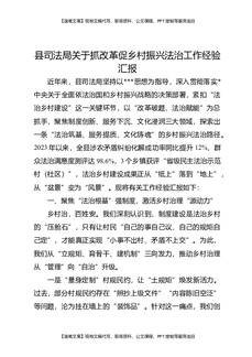 县司法局关于抓改革促乡村振兴法治工作经验汇报.docx
