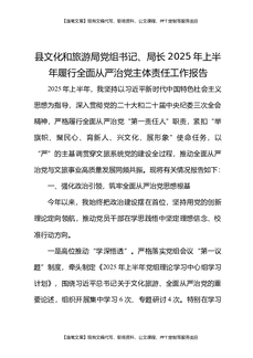 县文化和旅游局党组书记2025年上半年履行全面从严治党主体责任工作报告.docx