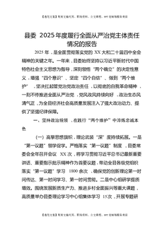 县委2025年度履行全面从严治党主体责任情况的报告.docx