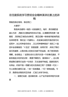 在住建系统学习贯彻全会精神演讲比赛上的讲稿.docx