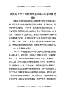 镇党委2025年度理论学习中心组学习情况报告.docx