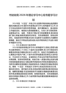市财政局2026年理论学习中心组专题学习计划.docx