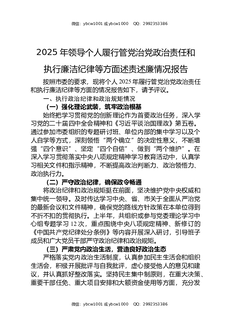 2025年领导个人履行管党治党政治责任和执行廉洁纪律等方面述责述廉情况报告.docx