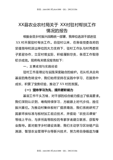 XX县农业农村局关于XX村驻村帮扶工作情况的报告.docx