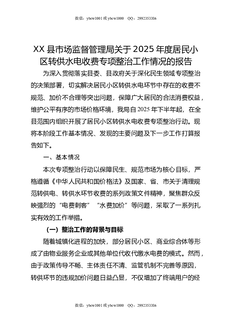 XX县市场监督管理局关于2025年度居民小区转供水电收费专项整治工作情况的报告.doc