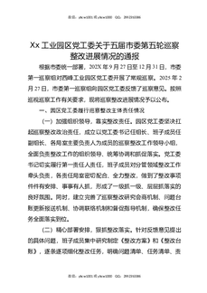 XX工业园区党工委关于五届市委第五轮巡察整改进展情况的通报.docx