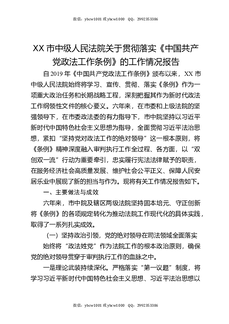 XX市中级人民法院关于贯彻落实《中国共产党政法工作条例》的工作情况报告.docx