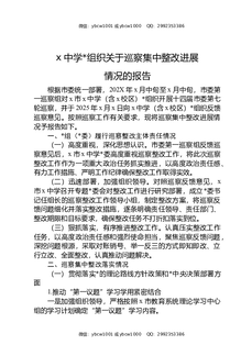 X中学党组织关于巡察集中整改进展情况的报告.docx