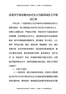 区委关于落实整治形式主义为基层减负工作情况汇报.docx