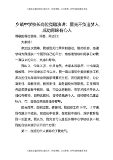 乡镇中学校长岗位竞聘演讲:星光不负追梦人,成功青睐有心人.doc