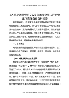 XX县交通局党组2025年落实全面从严治党主体责任自查自纠报告.doc