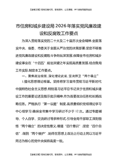 市住房和城乡建设局2026年落实党风廉政建设和反腐败工作要点.docx