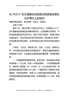 在2025广东交通基础设施建设高质量发展论坛开幕式上的致词.docx