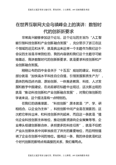 在世界互联网大会乌镇峰会上的演讲:数智时代的创新新要求.docx