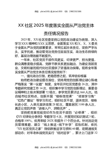 XX社区2025年度落实全面从严治党主体责任情况报告.docx