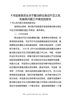 X市监察委员会关于整治群众身边不正之风和腐败问题工作情况的报告.docx