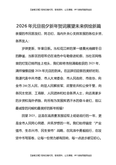 2026年元旦前夕新年贺词展望未来共绘新篇.docx