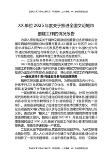 XX单位2025年度关于推进全国文明城市创建工作的情况报告.docx