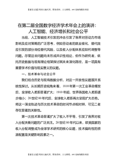 在第二届全国数字经济学术年会上的演讲:人工智能、经济增长和社会公平.docx